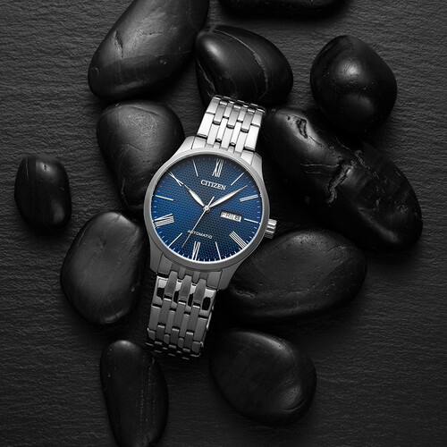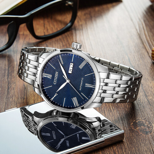 透光率高丨西铁城机械手表,走时稳定,人工合成的球面表镜,透光率高,长久佩戴光洁如新,天空蓝的表盘设计,增添了复古时尚感。