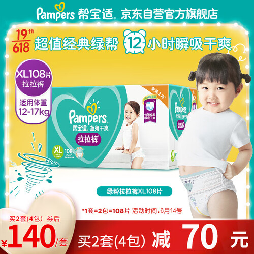 帮宝适 超薄干爽绿帮拉拉裤