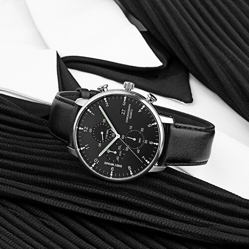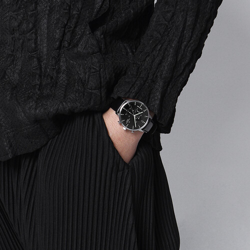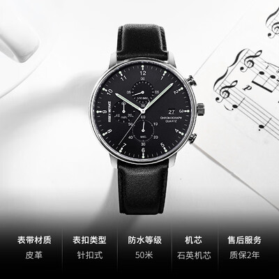 采用纯黑色调衬托,显得简约低调,打造出沉稳大气魅力。表壳运用不锈钢材质打造,提升耐磨性,保持崭新如一。
