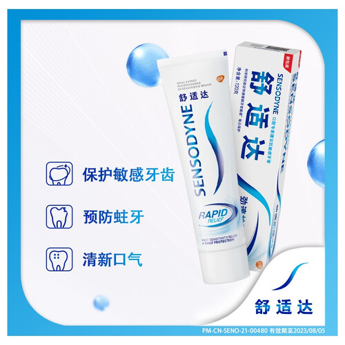 60秒可以快速缓解牙齿敏感,在牙齿表面形成保护层,抵抗日常酸性刺激。180g的大容量包装,给敏感牙齿更好的呵护。