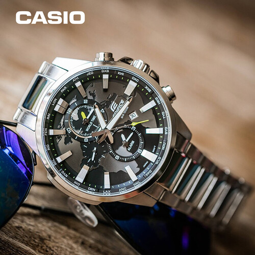 这款手表将黑色的表盘搭配白色不锈钢的表身,带来时尚质感,表盘采用创意的地球地图设计,个性又不失时尚,简洁大气。