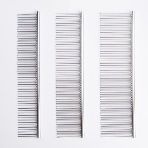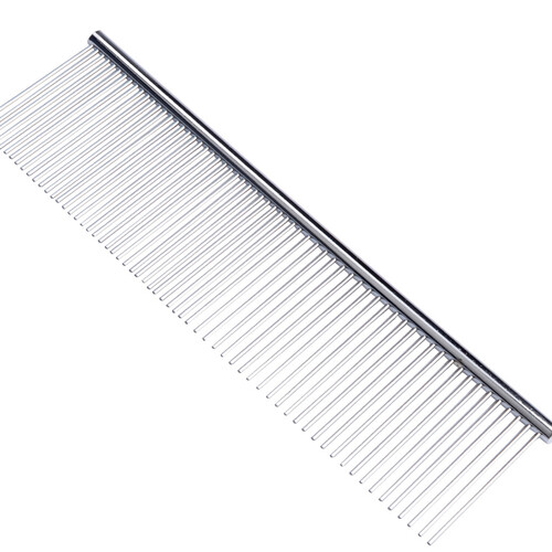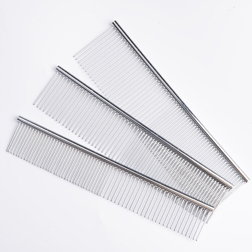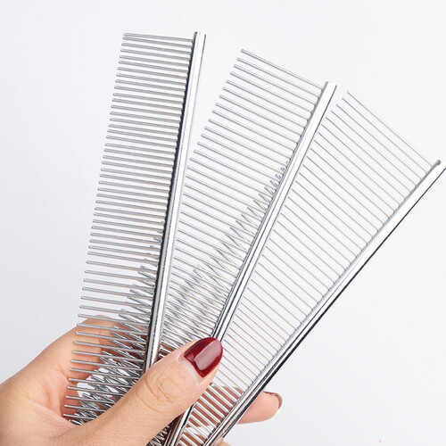 采用优质金属制作而成,表面光滑不伤肤。疏密针头各一边,既能将打结毛发疏通,又能给宠物做造型,一举两得。