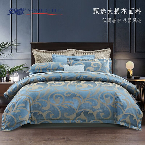 质量好的面料制作的四件套,摸上去舒适柔软,躺在上面吸湿透气性好。具有固定绑带,使被罩与被芯更加贴合,盖着更舒适。