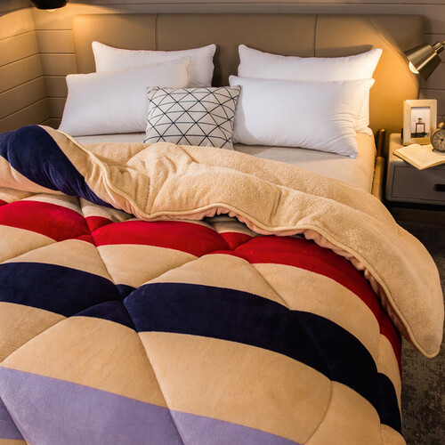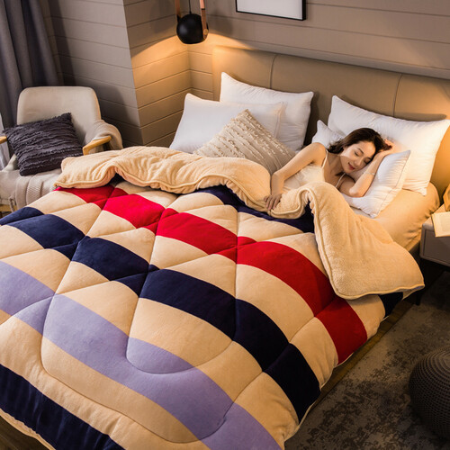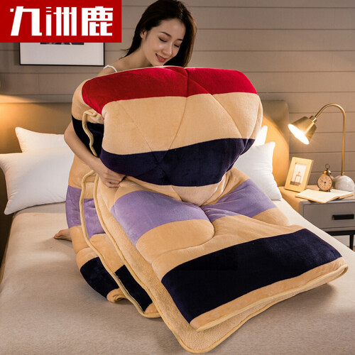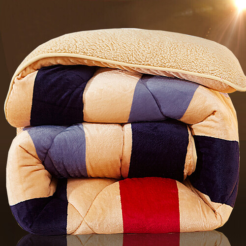 九洲鹿 仿羊羔绒条纹纤维被