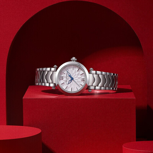 莲花雕纹的盘面,精致细腻,清雅十足,彰显质感。手表盘上点缀了莲花雕纹,使得整体造型脱颖而出。