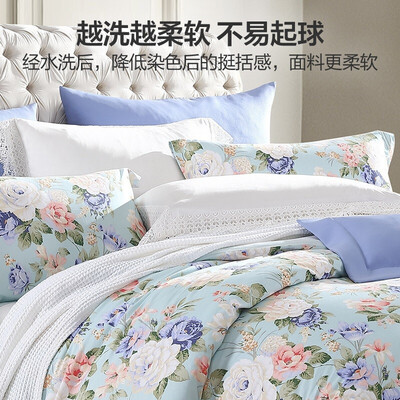 表面的素雅洁净大花朵,采用环保印染技术,色牢固较高,且双面可用。采用斜纹织造技术,细密厚实,手感柔软,不易起球。