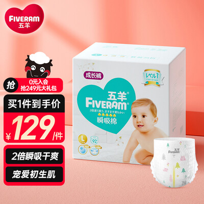 五羊亲肤瞬吸棉柔面层拉拉裤