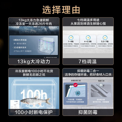 3D逆循环速冷丨要想获得更好的制冷保鲜效果,怎么能没有这款3D逆循环制冷冰柜。它可释放出足量冷气,均匀的包裹食材,冷冻更快而且更彻底,大大延长食物保存时间。