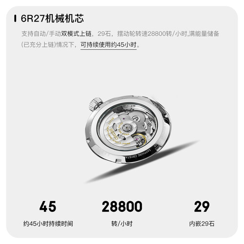 明亮通透的表镜设计,视野清晰的同时,也非常的结实耐磨。时尚的表冠设计,操作简单,可以随时调节时间,手感也很舒适。