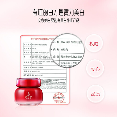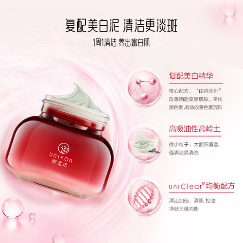 甄选天然植物精粹,滋养润泽肌肤,淡化黑色素,带来红润好气色;天然矿物泥浆,有效吸附油脂污垢,清洁净透毛孔。