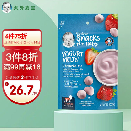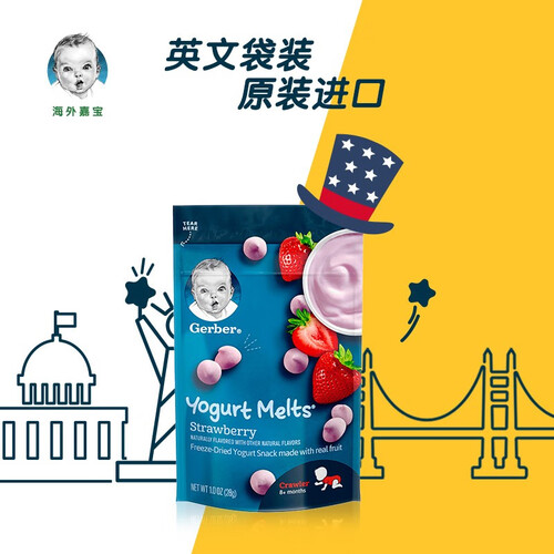 美国进口三段辅食,酸酸甜甜的草莓味,帮助提升宝宝食欲。造型小巧,宝宝小手也能抓握,入口即溶,吞咽方便,0人工添加妈妈更安心。