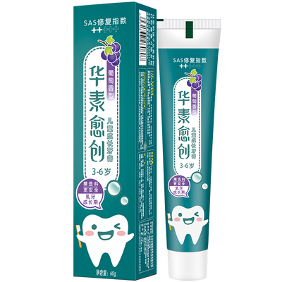 口腔护理丨华素愈创儿童牙膏是专为岁儿童设计的成长牙膏,含有的SAS修复成分,具有修复口腔粘膜的功效,让宝宝牙齿更健康。