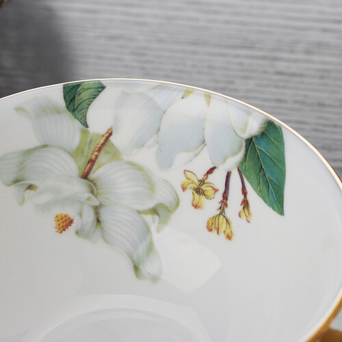 瓷质细腻通透,器型美观典雅,彩面润泽如玉,花面多姿多彩,高温烧制,表面光滑透亮,手感细腻。