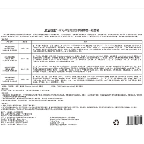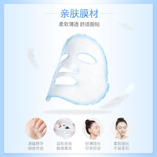 蕴含四大植物补水成分,迅速补水锁水,修护肌肤屏障,轻松告别沙漠肌。轻薄柔软的膜布,贴合脸部轮廓,久用不易变形。