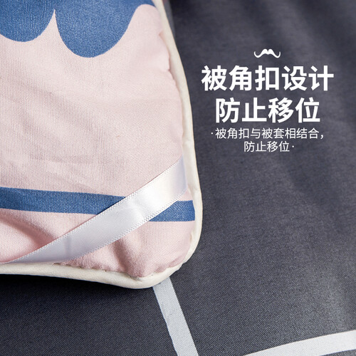 采用原料聚酯纤维填充的棉被,清爽透气,洁白蓬松,保暖的同时不压身。采用环保印染工艺,色牢度高不易掉色。