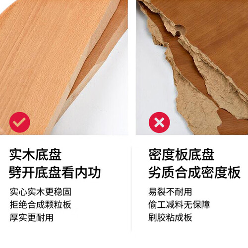 加大加厚的实木底盘,结构稳固不摇晃,三角形力学支撑更加耐用,表面精细打磨处理,圆滑细腻,耐用不伤手。