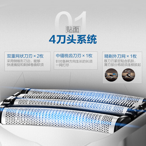 复合人体工程学结合设计,黄金比例三段式分层,握持手感更舒适。使用独立式浮动三刀头,有效剔除各个方向生长的长须。
