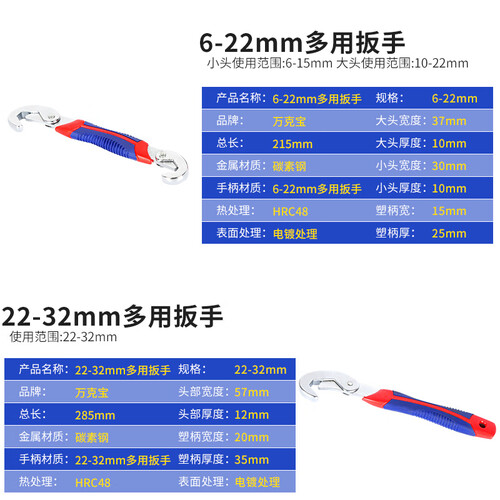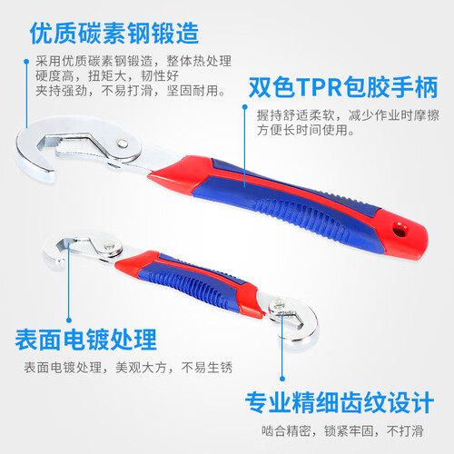 采用碳素钢锻造,整体采用热处理,扳手的硬度高,扭矩大,韧劲也好,不容易打滑,握持感也很好,方便长时间用。
