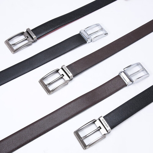 优雅大方的牛皮腰带,可自由剪裁的带身设计,满足不同人群腰围穿戴。镂空矩形的针式带扣,配以易开启装饰,轻松调节长度。