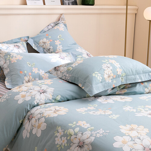 高调灰蓝性的配色,表面以生机勃勃的木香花点缀,清新淡雅,富有典雅气质。采用纯棉材质,手感柔软,质地细腻,带给肌肤无压的舒适感。