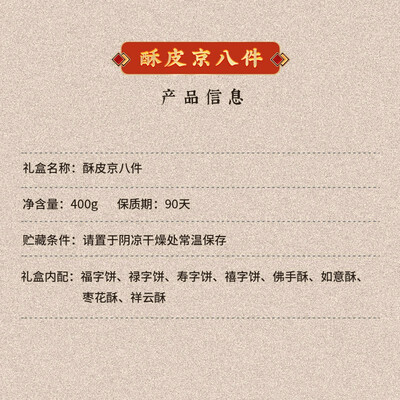 玫瑰豆沙陷,凤梨馅,桂花山楂陷,奶油栗蓉陷,椒盐黑芝麻,红莲五仁陷,小巧枣花酥,枸杞豆蓉馅,8种口味。是送礼的好选择。