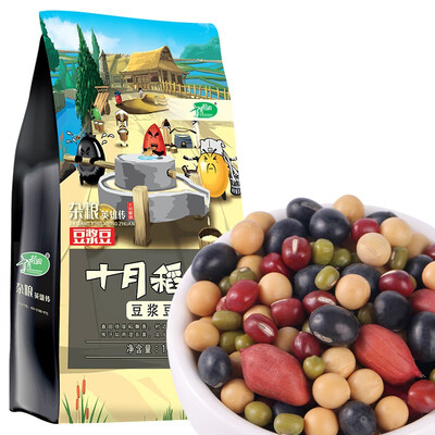 十月稻田豆浆豆以五种原料均衡搭配,黄豆搭配黑豆、绿豆、红豆和花生米,中和了单一黄豆豆浆的豆腥味,口感滑糯酥软,清香绵稠。