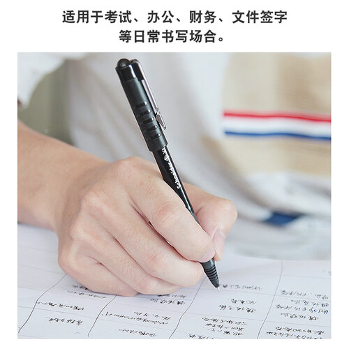 采用精致的滚珠设计,写字顺滑流畅,不会出现断续的情况;金属的笔夹,经久耐用,不易折断变形。