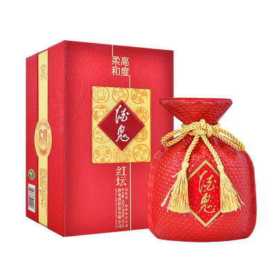 喜庆红坛包装,精美大气,寓意吉祥,适合节日庆祝、婚礼宴席使用。采用优质原材料提炼而成,酒味醇香,口感甘润,尾净余长。