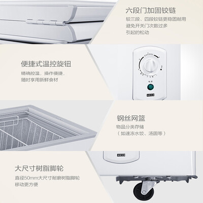自动变温的功能,能够根据不同的储存食物量,自动调整不同的温度模式。底部滚轮的设计,方便移动。