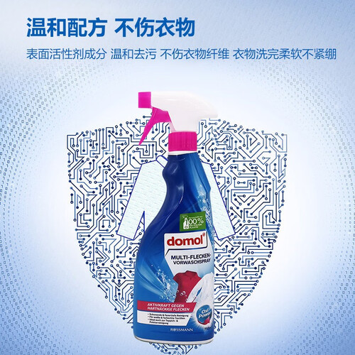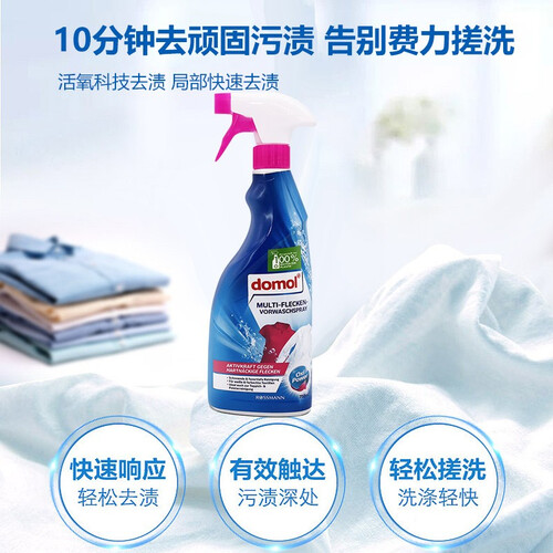 德国原装进口的一款多功能衣物预洗喷雾,均衡喷雾配方,均匀覆盖并渗透到织物内部,能深入瓦解顽固污渍。