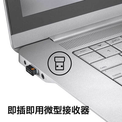 配备微型USB接收器,无线连接范围可达10米左右,使用更自由。同时采用静音设计,点击安静无声,在图书馆也能放心用。