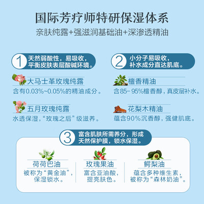 蕴含玫瑰纯露成分,能够提升肌底储水力,减少肌肤水分流失。配以花梨木精油成分,补水直达肌肤底层,深入滋养干燥皮肤。