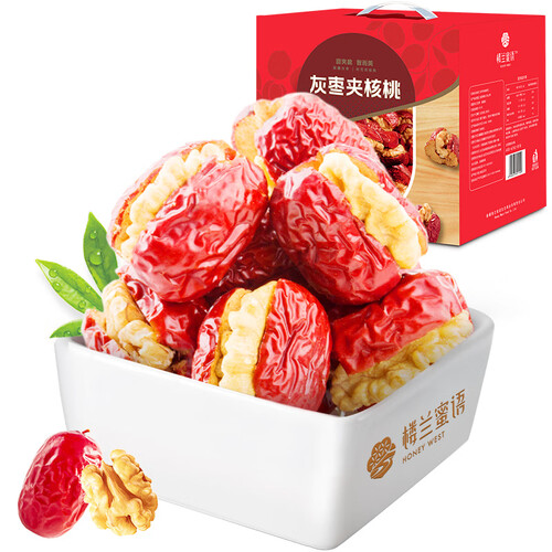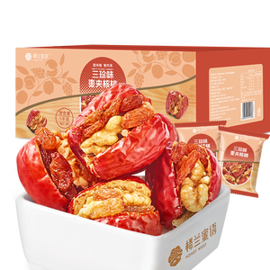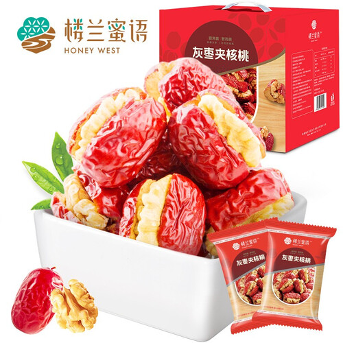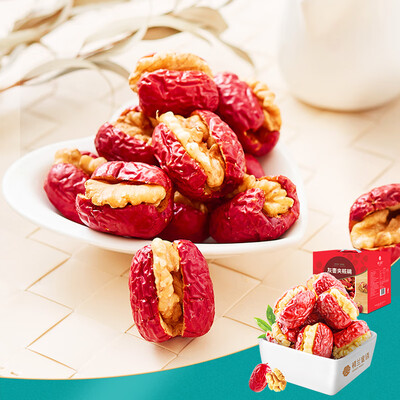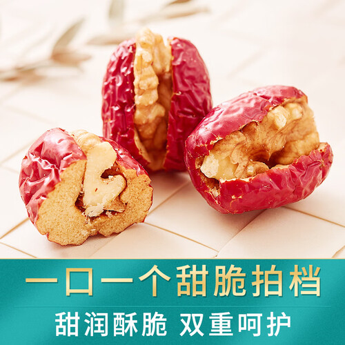 精选新疆灰枣,果肉香甜细腻,口感软糯。搭配上薄皮核桃,果仁饱满松脆,吃起来口感丰富,越嚼越香。