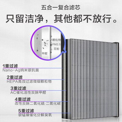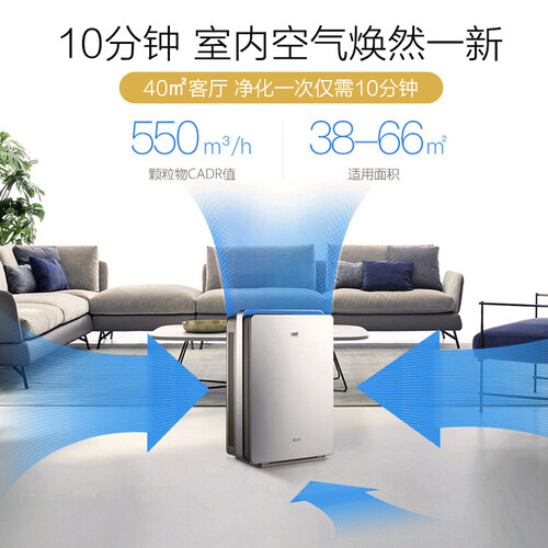 搭载直流电机配合双吸力离心风轮,全速功率下噪音也不超过68分贝。双片滤网带来双倍净化效果,净化不只一面。
