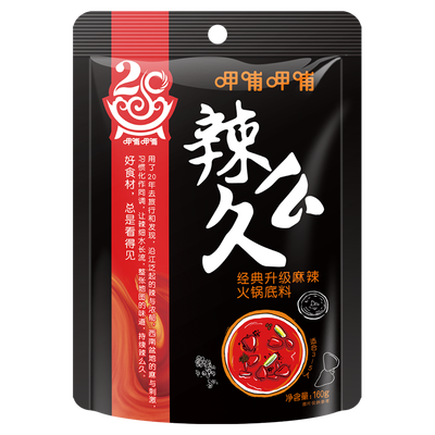 呷哺18年经典口味升级,精选永川豆豉、青麻椒等食材科学配比,麻辣味更加浓郁,久涮仍保持红艳汤色和鲜香麻辣好滋味。