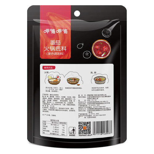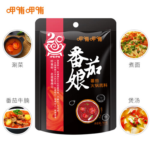 采用上乘的番茄精工制成浓郁番茄味,煮出来的火锅味道特别鲜美;选用上等新疆小番茄,富含番茄红素,尽显纯正酸香本色。