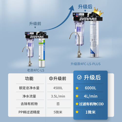采用纯物理过滤方式,无需插电,不产生废水,更节能环保。总净水量高达4500L,寿命长久,适合大家庭使用。