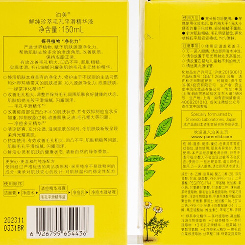 资生堂泊美鲜纯珍萃毛孔平滑精华