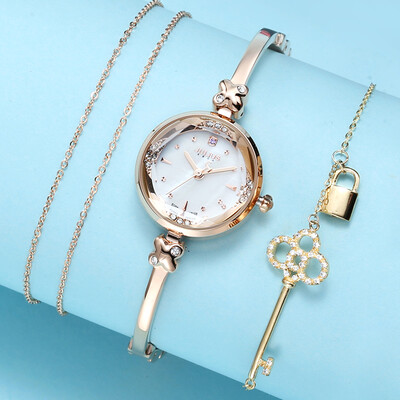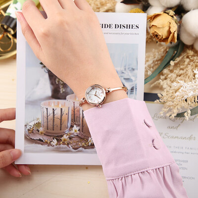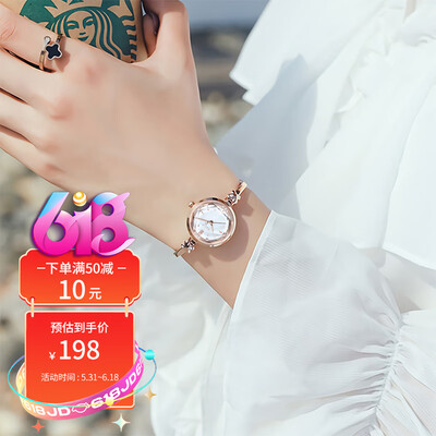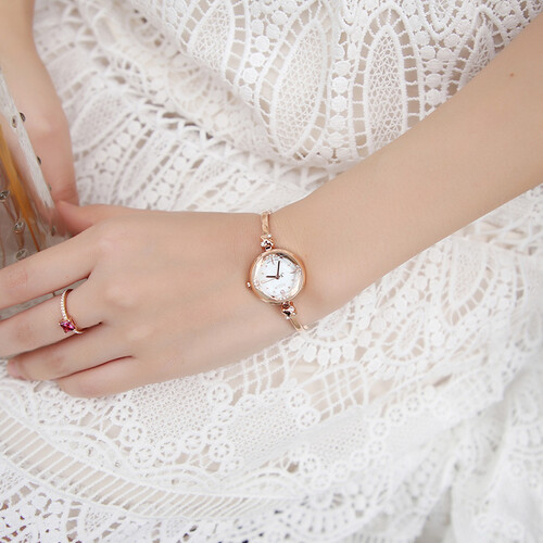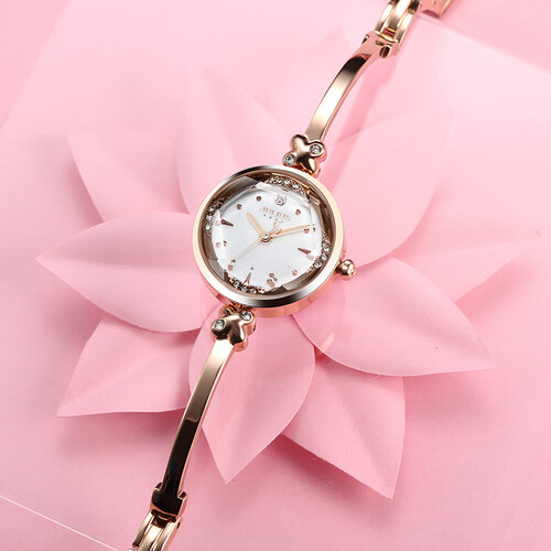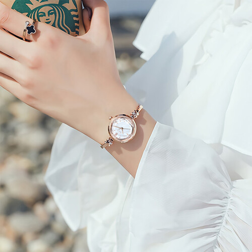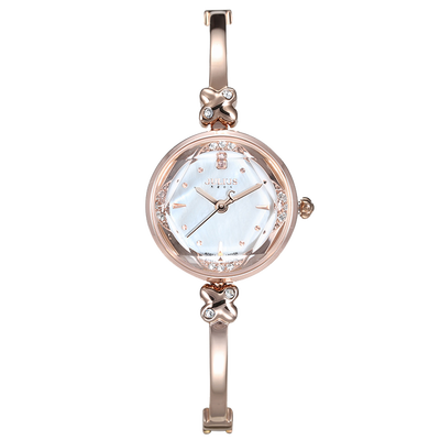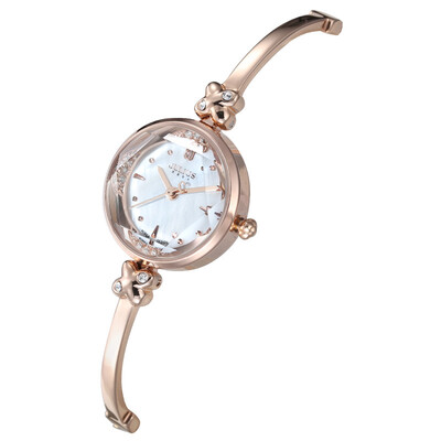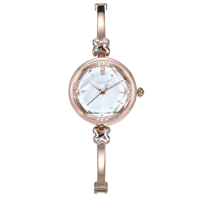 镶嵌水钻丰富视觉看点,能够多维度散发光芒,闪耀出彩。表扣采用珠宝扣形式设计,优雅迷人。30米防水,实用性强。