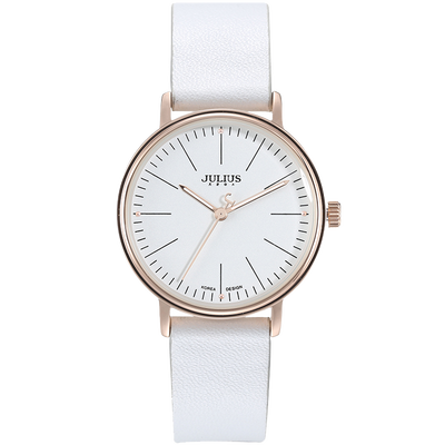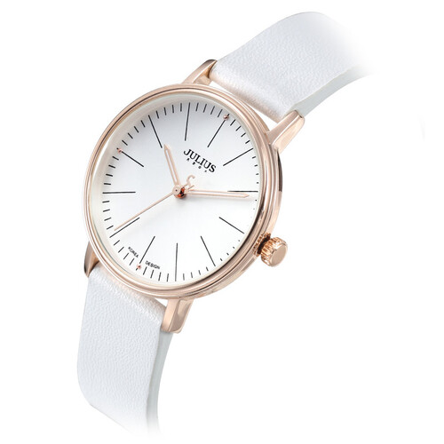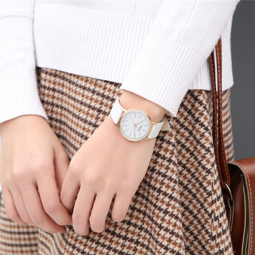 玫瑰金的表框搭配白色的表盘,看起来感觉高大上。搭配石英机芯,走时更准确。