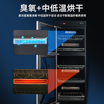 自动定温定时,安全省心,为您的健康提供保障。臭氧加中低温烘干,适用于不耐高温的餐具。智能操控,一键开启,使用方便。