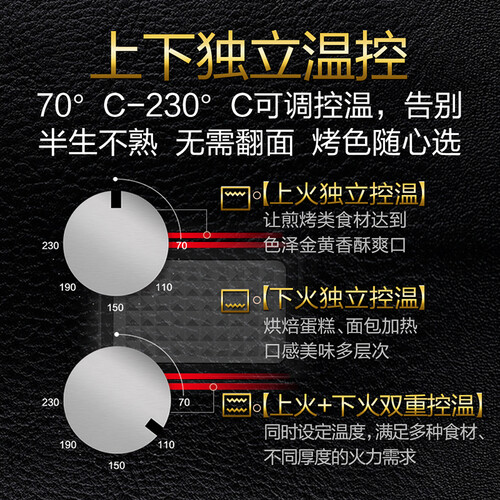 机身采用了冷轧钢材质打造而成,硬度比较大,长久使用也不易变形。上下独立温控技术,可根据自身喜爱的口感随意调节,省电节能。