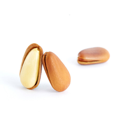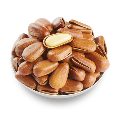 这款松子外壳开口很大,轻松就能剥开,不必费力借助工具开壳,另外松仁颜色白润,一看就很好吃。