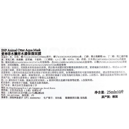 斯内普 水獭形水漾保湿面膜