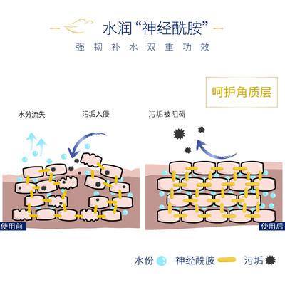 添加神经酰胺,补充肌肤日常缺失的营养,深层修护受损肌肤。添加高浓度美容液,促进肌肤吸收水分,让肌肤水润光泽。