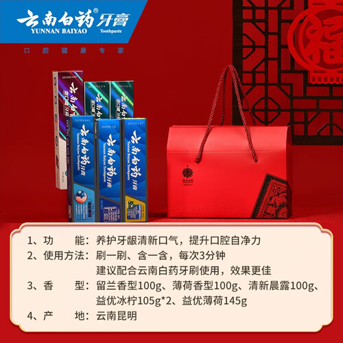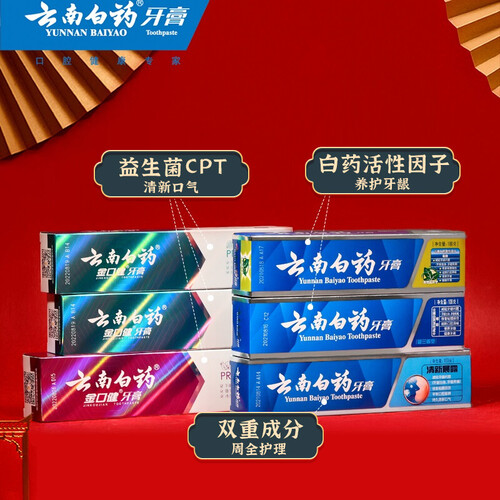 云南白药牙膏套装,其成分源自天然的植物成分,具有温和的清洁效果,针对脆弱敏感的口腔问题有一定的缓解效果,带来强健的牙齿。