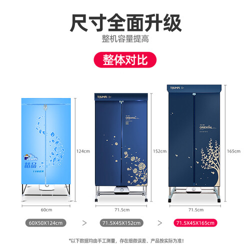 别让坏天气影响你的好心情,快速烘干每天都能放心换洗。大功率节省时间,环绕热风模式,呵护衣物减少褶皱,高密度滤网防止杂质。