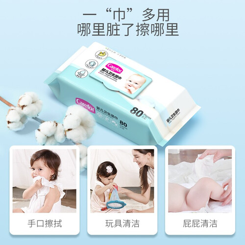 湿巾中的温和的清洁成分,有效清洁肌肤的同时宝宝用了不会有刺激感,又能让皮肤保持水润不干燥。