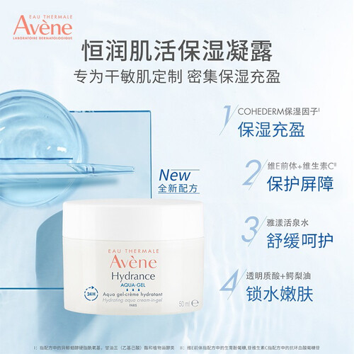 拥有独特的水凝霜质地,结合乳霜与啫喱优势,质地轻盈,更易涂抹均匀。采用水包油结构,帮助肌肤持久保湿。