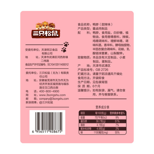 三只松鼠 甜辣味香辣鸭脖